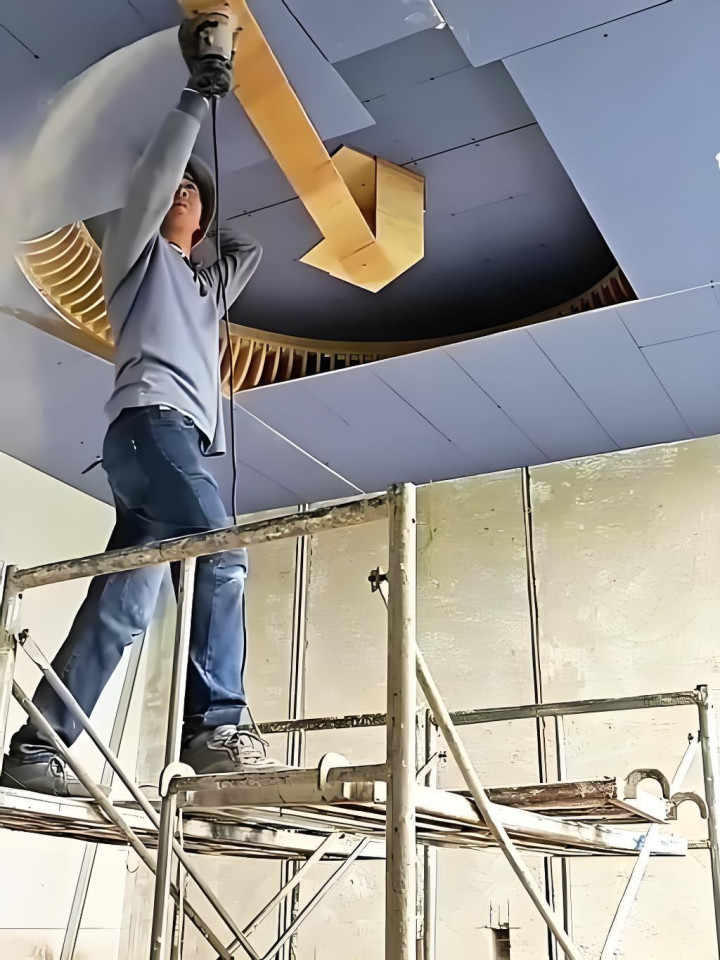 转角处无谓整板:石膏板吊顶的转角位置最容易开裂,正规作念法是用L型整板切割,幸免拼接。有的工东说念主平直两块板拼接,三个月后必出间隙。
