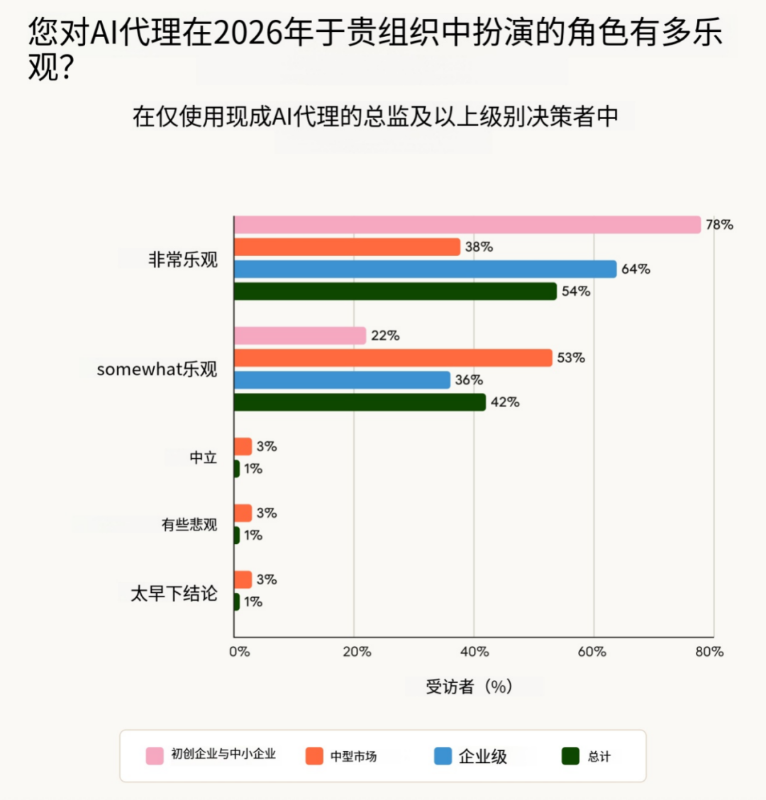 总共界限的组织都渴望东说念主工智能智能体在 2026 年能带来显耀的业务影响,其中企业对这项本领的后劲推崇出尤为热烈的信心。
