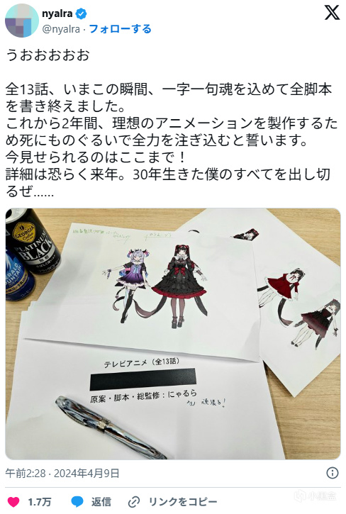也就是说,从我在中野百老汇偶遇稻垣先生的那一天起,通往动画化的谈路就一直在幕后延展着。Aniplex中途加入。之后我就每周王人写剧本,未必会勤勉大众比及半夜,我方也对着稿子合手狂。终末13集动画的剧本终于写出来了。