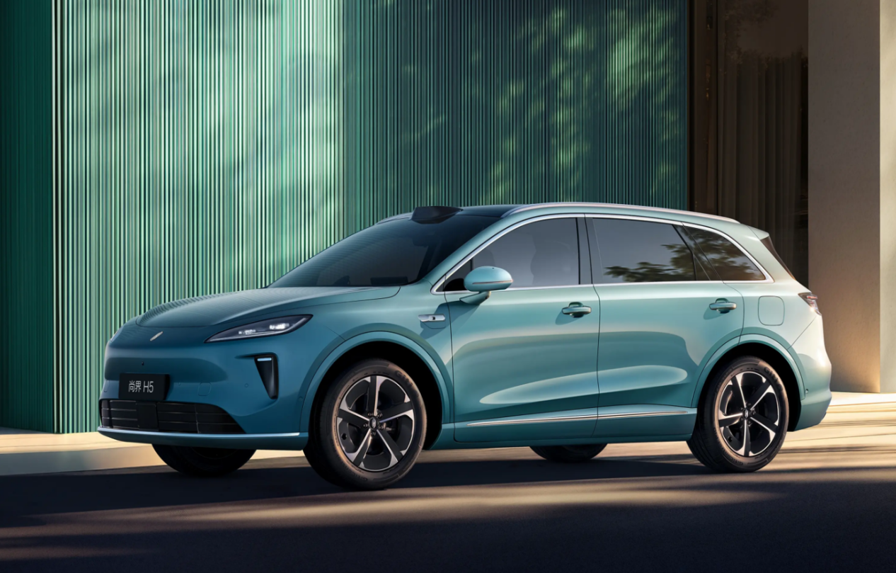 尚界H5定位中型SUV,主打华为智驾与鸿蒙座舱,兼顾家用与科技体验。顶配版尚界H5 纯电MAX长续航版官方引导价19.98万元,末端限时优惠后约19.08万元。车身尺寸4780×1910×1657mm,轴距2840mm,5座布局,后备厢圭表容积606L,纯电版带124L电动前备箱。能源为单电机后驱,永磁同步电机最大功率180kW(245Ps),峰值扭矩350N·m,搭载80kWh三元锂电板,CLTC纯电续航640km,百公里电耗约13.6kWh。