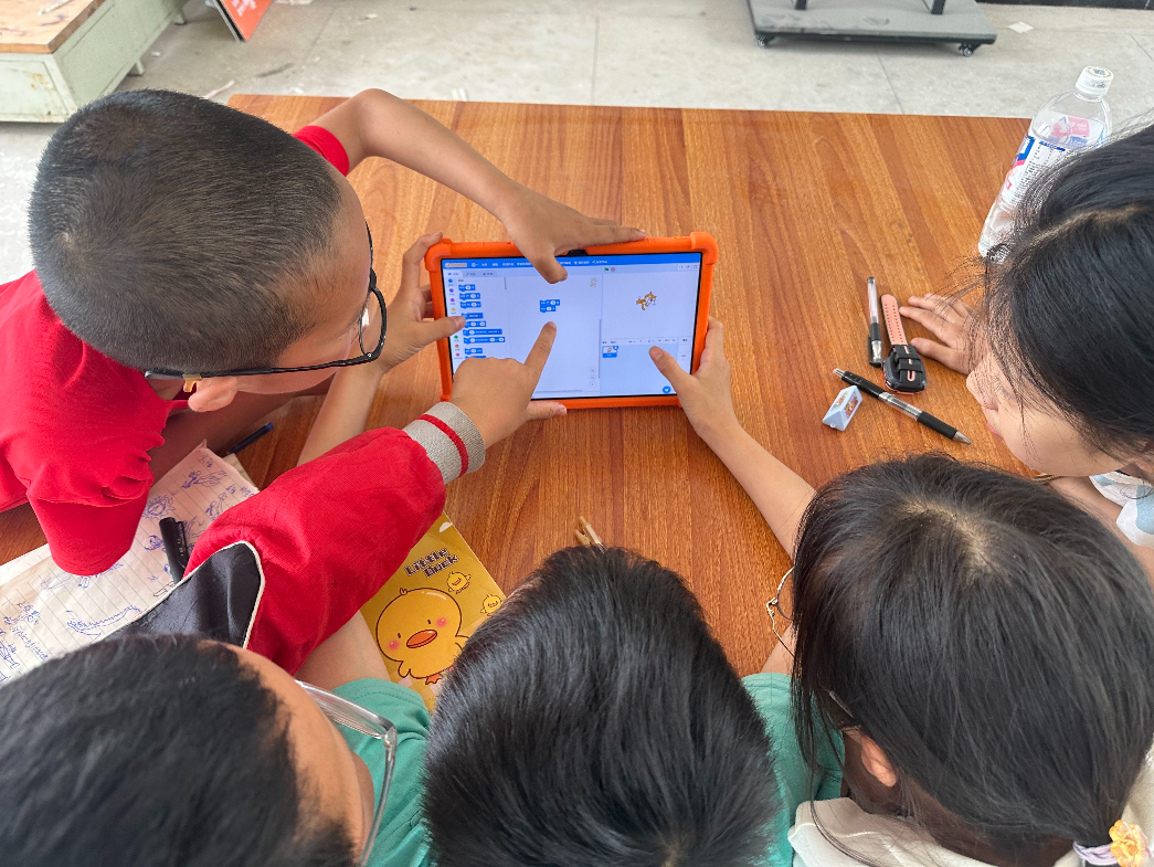 图|牌坊小学的同学们共同盘考若何让编程小猫动起来
