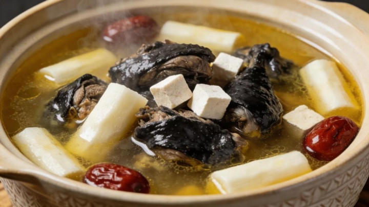 体质偏弱、脾胃欠安的东说念主,适合饮用山药茯苓乌鸡汤。准备半只乌鸡、一根铁棍山药、二十克茯苓、三颗红枣与姜片。乌鸡焯水去除过剩油脂,茯苓、红枣洗净,山药去皮切块,总共食材一同放入砂锅,加足量净水,大火烧开后转小火慢炖一小时,临了加盐调味。汤品清鲜味醇,温补而不上火,茯苓祛湿健脾,山药固护脾胃,乌鸡润泽体格,兼顾祛湿与养肝两大需求,和气滋补,贴合中老年东说念主的体格状态。
