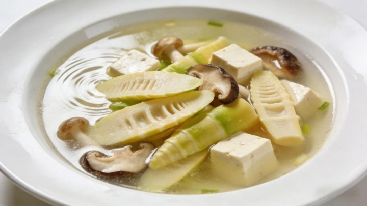 春笋豆腐菌菇汤是春日时令清鲜汤品。取一根春笋、一块嫩豆腐,搭配适量菌菇、葱花、食盐与白胡椒粉。春笋去皮切片,滚水焯烫两分钟去除涩味,菌菇洗净,豆腐切小块,锅中净水烧开,放入春笋与菌菇煮五分钟,再下豆腐煮三分钟,加盐与小数白胡椒粉调味,撒上葱花即可。春笋是春日应季食材,能疏肝理气、化解春困,搭配豆腐与菌菇低脂高纤,澄澈解腻,既能晋升食欲,又能疏解肝气,让饮食追想清淡本真。
