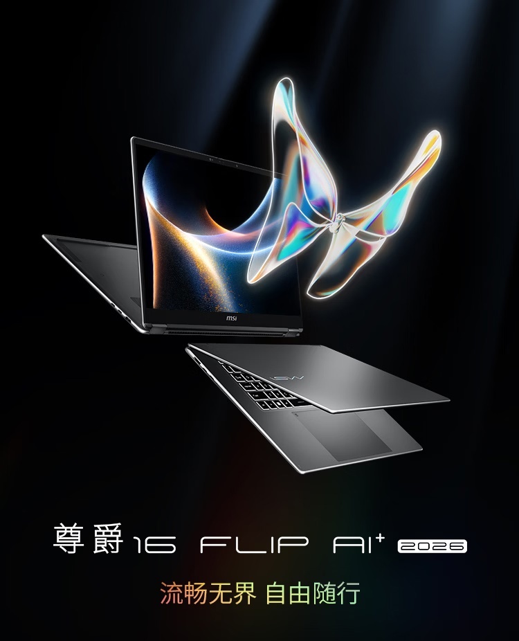 两者均为 100% DCI-P3 广色域,且自带微星灵隐触控笔,赞助 360° 翻转。除此除外,两款机型与尊爵 14 AI+ 2026 款基本一致,包括真空腔均热板散热、心流触控板、11.9mm 厚度、81Wrh 电板、100W PD 快充、Hi-Res + DTS 音效等等。