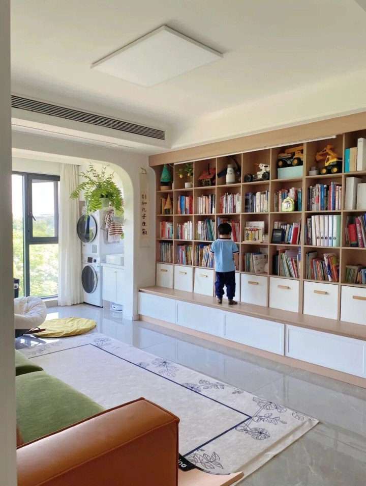 底下放绘本,上头放常看的书,旁边再摆个沙发。客厅顷刻间变成了家庭藏书楼。孩子下学回来,自关系词然地就会拿本书来看,比你吼他一百遍“去看书”王人管用。