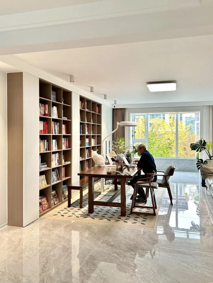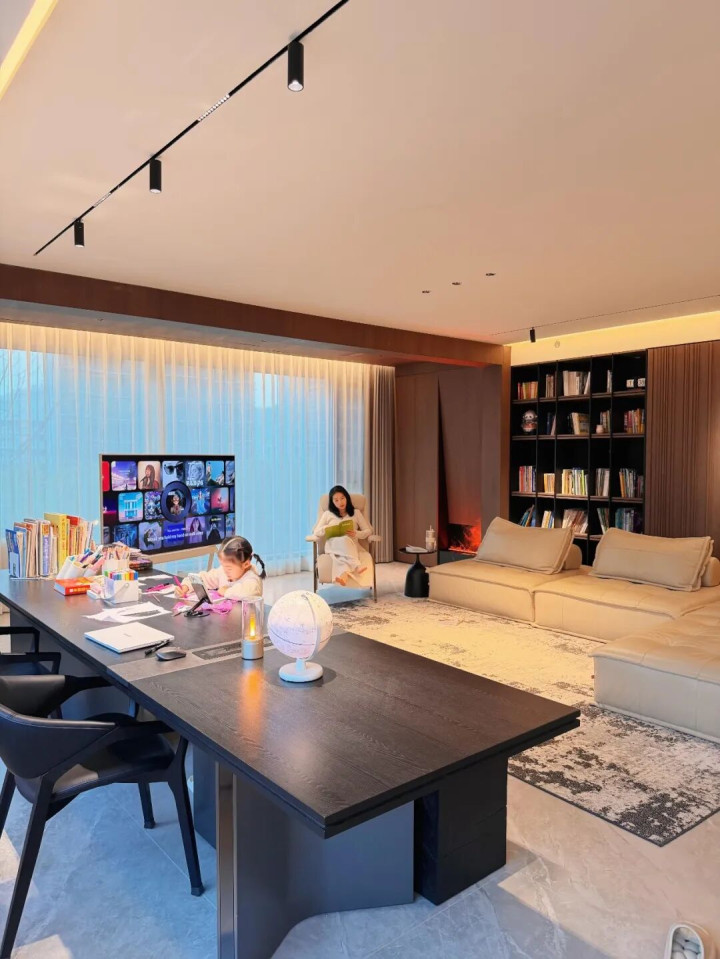 老公在旁边用电脑加班,孩子在对面写功课,你在另一头作念手工。一家东说念主各忙各的,但昂首就能看见彼此。