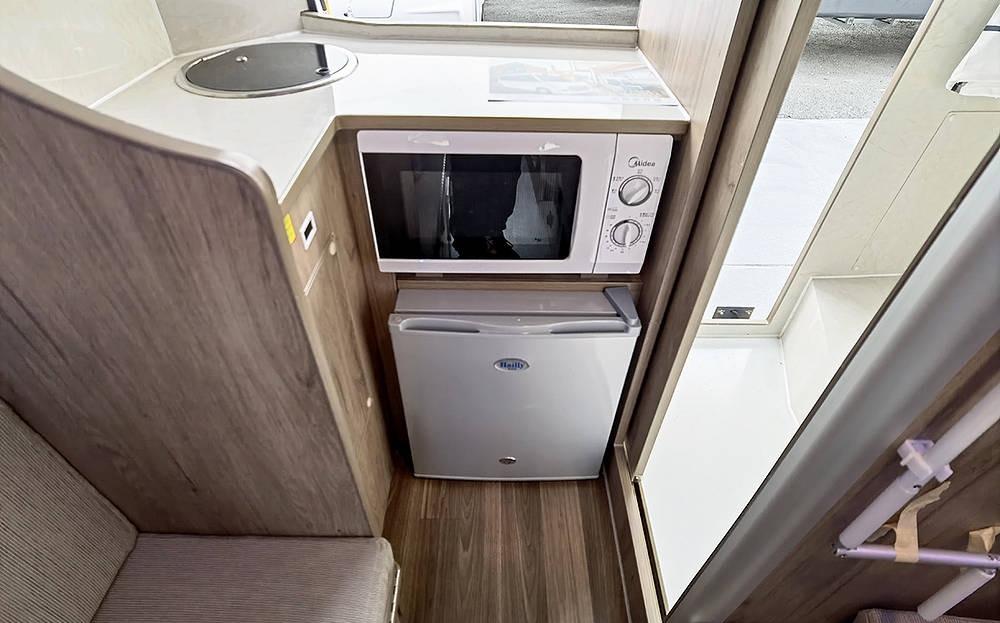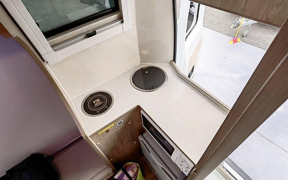 {jz:field.toptypename/}接着看厨房,配备了电磁炉、洗菜盆、50L车载雪柜和微波炉等,台面下方有储物柜,不错盛放锅、碗、瓢、盆、筷子、勺子、调料、糖、盐等厨房用品。作念饭时不错把尾窗洞开,毕竟莫得配备油烟机。